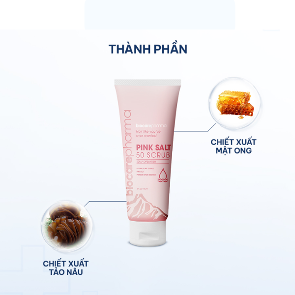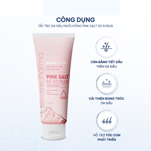 Mô tả sản phẩm Tẩy Tế Bào Chết Da Đầu Muối Hồng Pink Salt 50 Scrub Biocare Pharma giúp loại bỏ da chết, giảm dầu nhờn và bết tóc