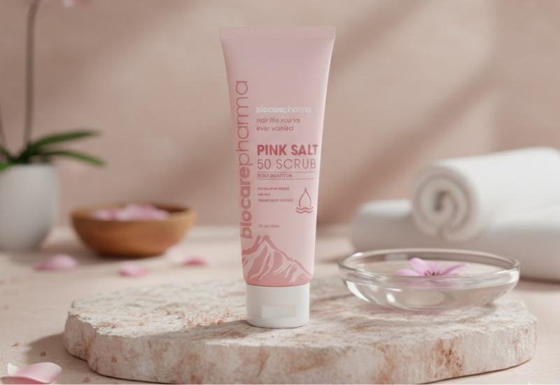 Công dụng Tẩy Tế Bào Chết Da Đầu Muối Hồng Pink Salt 50 Scrub Biocare Pharma giúp loại bỏ da chết, giảm dầu nhờn và bết tóc