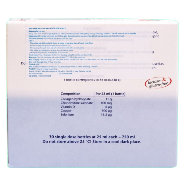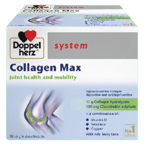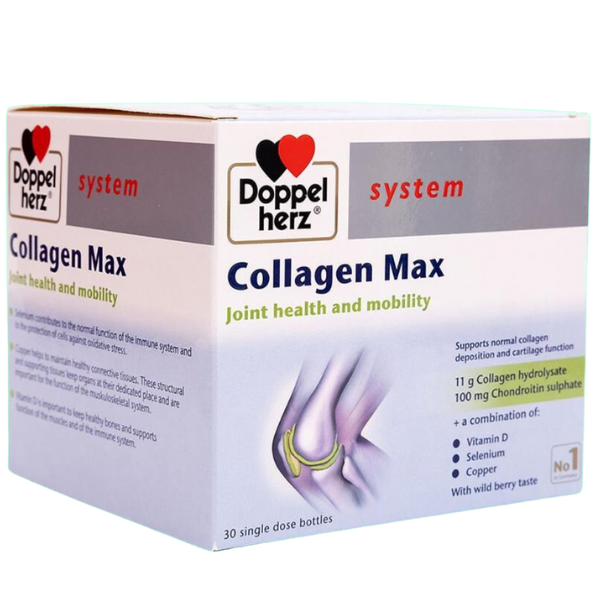 Không chỉ hướng đến xương khớp, Doppellherz Collagen Max còn góp phần hỗ trợ chăm sóc da và mô liên kết từ bên trong, giúp cơ thể vận động thoải mái và dẻo dai hơn theo thời gian. Với công thức được kiểm soát nghiêm ngặt theo tiêu chuẩn của thương hiệu Doppelherz (Đức), sản phẩm phù hợp cho người trung niên, người cao tuổi hoặc những ai muốn chủ động bảo vệ sức khỏe xương khớp lâu dài.