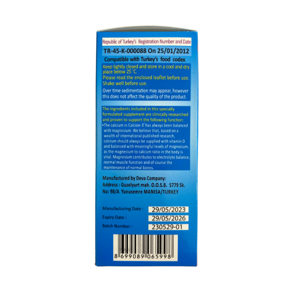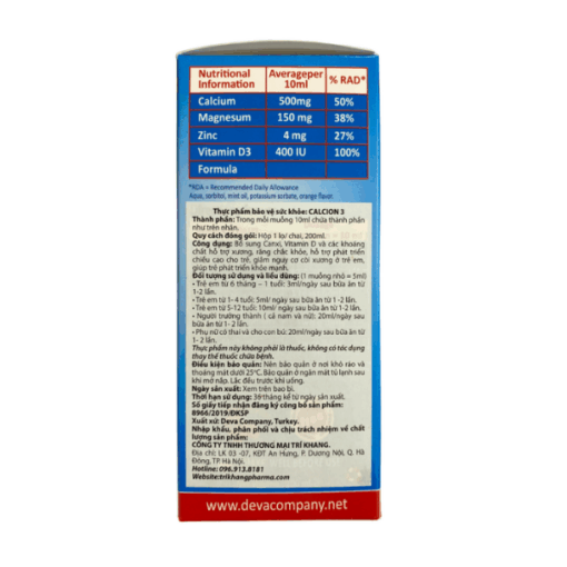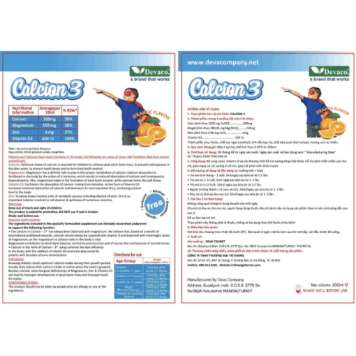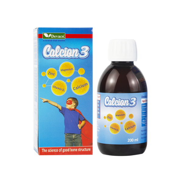 Calcion 3 là thực phẩm bảo vệ sức khỏe dạng siro nhập khẩu từ Thổ Nhĩ Kỳ, cung cấp canxi, magiê, kẽm và vitamin D3 trong công thức toàn diện giúp hỗ trợ phát triển xương và răng chắc khỏe từ giai đoạn sớm.