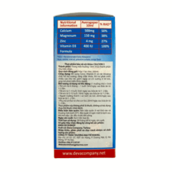 - Calci (tính theo 1250 mg CaCO3)……………500 mg