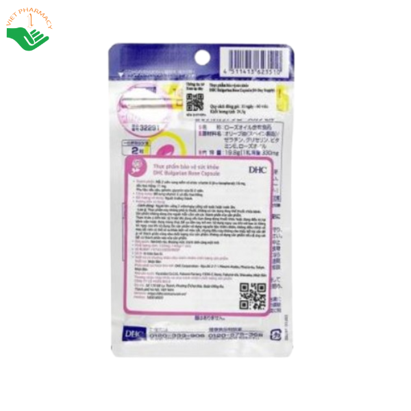 DHC Bulgarian Rose Capsule là thực phẩm bảo vệ sức khỏe do DHC Corporation (Nhật Bản) sản xuất, được bào chế dưới dạng viên nang mềm, chứa vitamin E tự nhiên kết hợp cùng dầu hoa hồng Bulgaria chiết xuất từ thiên nhiên, hỗ trợ bổ sung dưỡng chất và chăm sóc sức khỏe hằng ngày cho người trưởng thành.