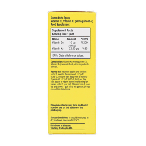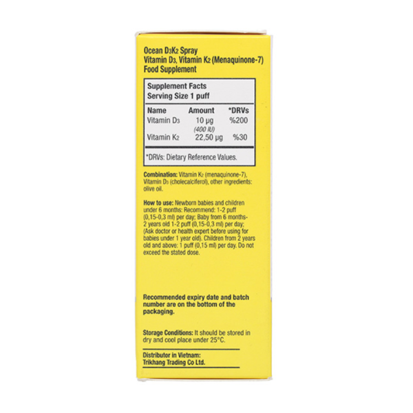 Trong 0,15ml dung dịch uống Ocean D3K2 (tương ứng mỗi 1 lần ấn xịt):