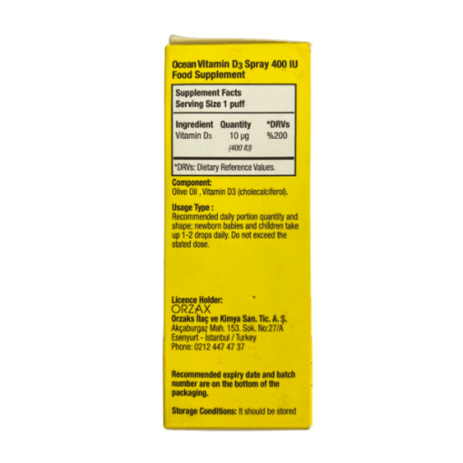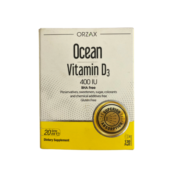 Ocean Vitamin D3 Spray 400 IU là thực phẩm bảo vệ sức khỏe chứa Vitamin D3 (Cholecalciferol) giúp bổ sung vi chất thiết yếu cho cơ thể trẻ nhỏ.