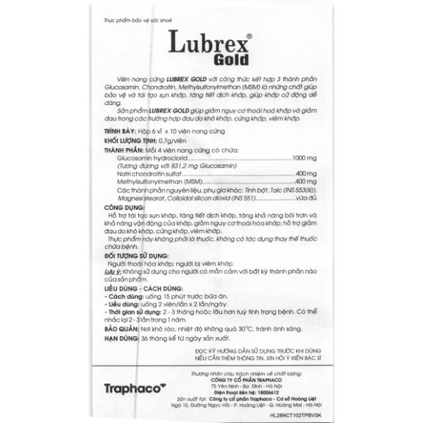 Thành phần Thực phẩm BVSK Lubrex Gold