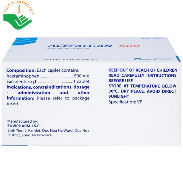 Thuốc Acefalgan 500 nên được bảo quản ở điều kiện nhiệt độ từ 25-30oC trong môi trường khô ráo.
