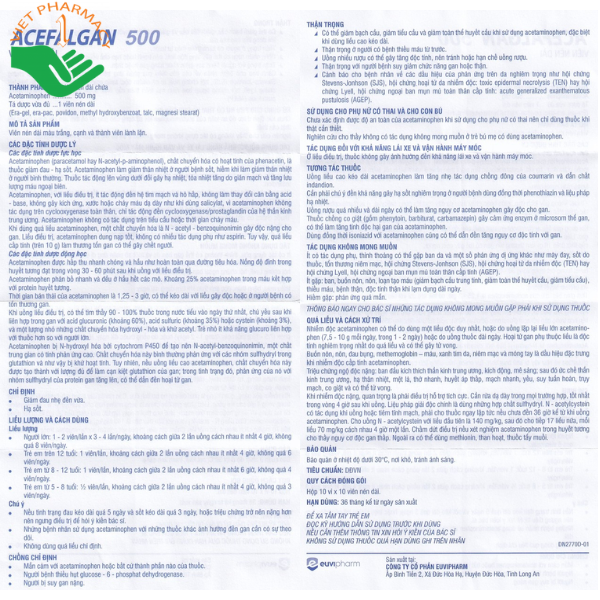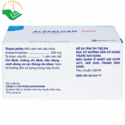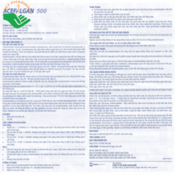 - Cloramphenicol: Thuốc Acefalgan 500 làm tăng nồng độ của Chloramphenicol trong huyết tương.