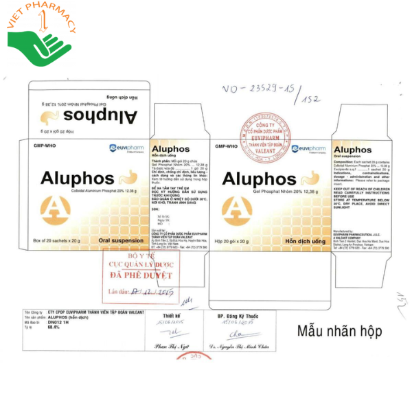 Thuốc Aluphos có chứa nhôm phosphat dưới dạng gel 20%, được sử dụng để điều trị các vấn đề viêm loét ở đường tiêu hóa, bao gồm: