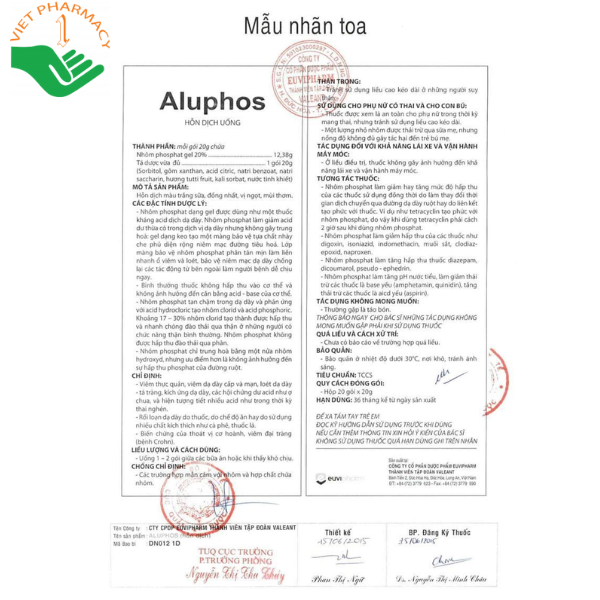 - Giai đoạn cho con bú: khả năng Aluphos có thể vào được tuyến sữa của mẹ nhưng với nồng độ khá thấp. Do đó, mẹ có thể dùng vì thuốc không đủ gây hại cho con.