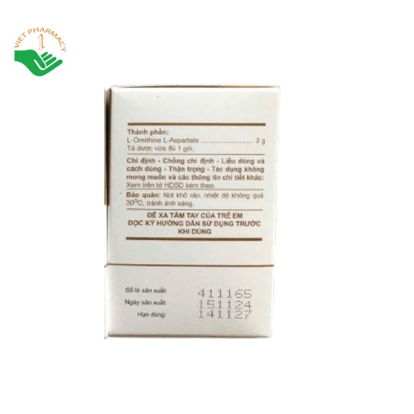 - Hoạt chất chính: L-Ornithin L-Aspartat 3g.