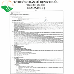 Chỉ định của thuốc Bezoxim 1g tác dụng diệt khuẩn bằng cách ức chế tổng hợp mucopeptide ở thành tế bào vi khuẩn