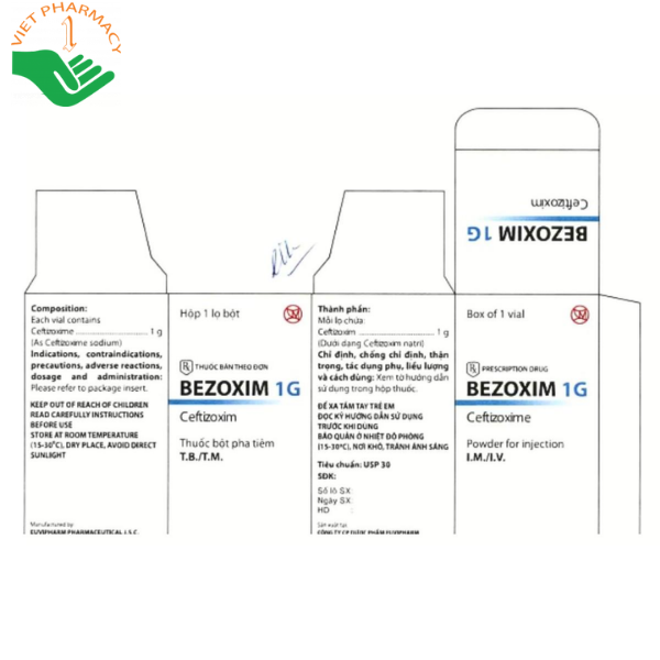 - Thuốc kháng sinh Bezoxim có tác dụng diệt khuẩn bằng cách ức chế tổng hợp mucopeptide ở thành tế bào vi khuẩn. Thuốc có phổ kháng khuẩn rộng hơn so với Cephalosporin thế hệ 1 và 2 đối với vi khuẩn Gram âm, bên với tác dụng thủy phân của phần lớn các beta-lactamase, nhưng tác dụng lên vi khuẩn Gram dương lại yếu hơn so với cephalosporin thế hệ 1.