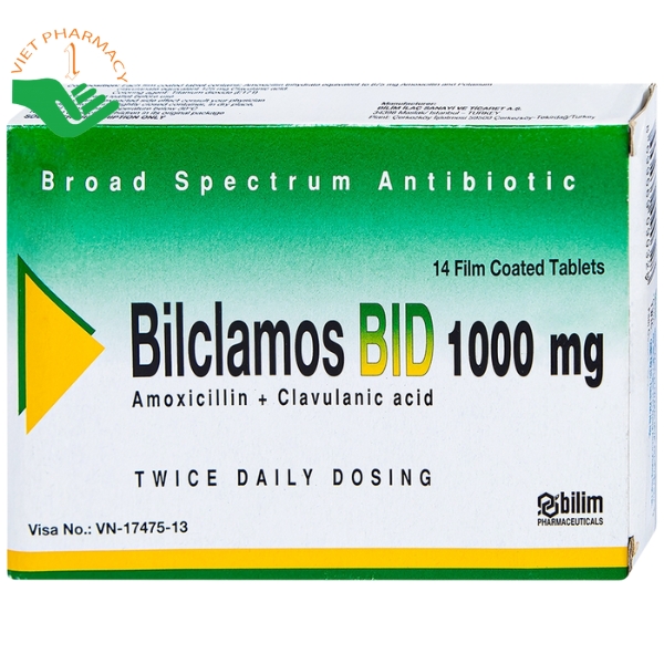- Viên nén bao phim Bilclamos 1000 mg là sự kết hợp giữa amoxicillin và acid clavulanic trong cùng một chế phẩm. Acid clavulanic giúp cho amoxicillin không bị beta – lactamase phá hủy, đồng thời mở rộng thêm phổ kháng khuẩn của amoxicillin một cách hiệu quả đối với nhiều vi khuẩn thông thường đã kháng lại amoxicillin, kháng các penicilin khác và các Cephalosporin. Có thể coi amoxicillin và acid clavulanic là thuốc diệt khuẩn đối với các Pneumococcus, các Streptococcus beta tan máu, Staphylococcus (chủng nhạy cảm với penicillin không bị ảnh hưởng của penicillinase), Haemophilus influenzae và Branhamella catarrhalis kể cả những chủng sản sinh mạnh beta – lactamase.