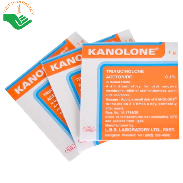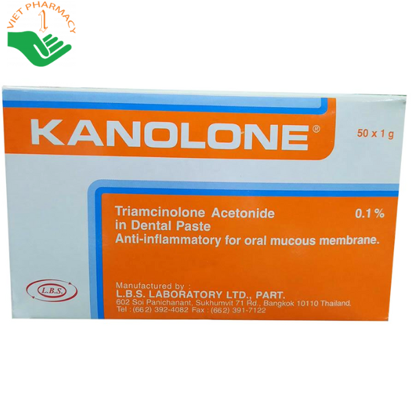 Thành phần: Mỗi gói thuốc Kanolone 1g có chứa hoạt chất chính là Triamcinolone acetonide hàm lượng 100 mg và tá dược vừa đủ 1g.