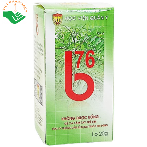 Trong quá trình sinh hoạt hàng ngày của con người có thể xuất hiện rất nhiều nguyên nhân gây bỏng như chạm vào nước sôi, bỏng bô xe máy, chạm vào những đồ vật nóng…Thuốc bỏng B76 Học Viện Quân Y với thành phần chính là bột vỏ cây Xoan Trà từ xa xưa đã được biết tới như một loại thuốc đắp lên những vết thương gây da do bỏng giúp làm dịu đi các vết bỏng, thúc đẩy nhanh quá trình liền sẹo.