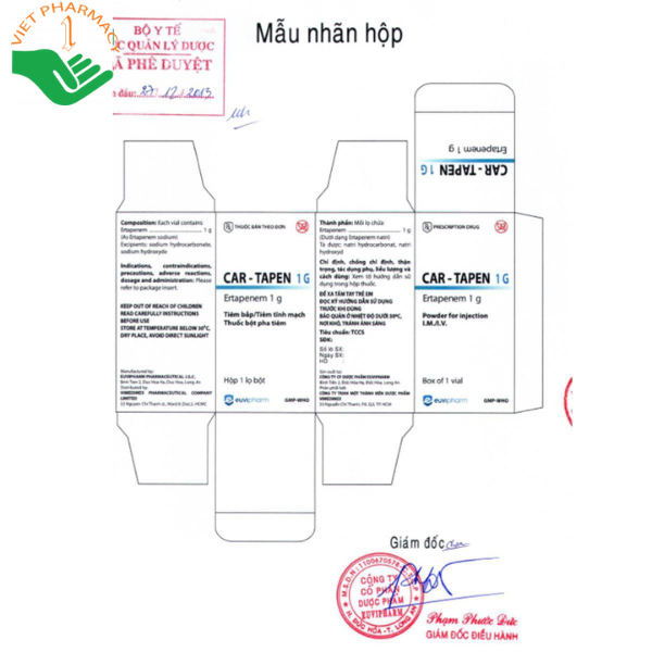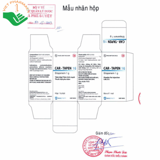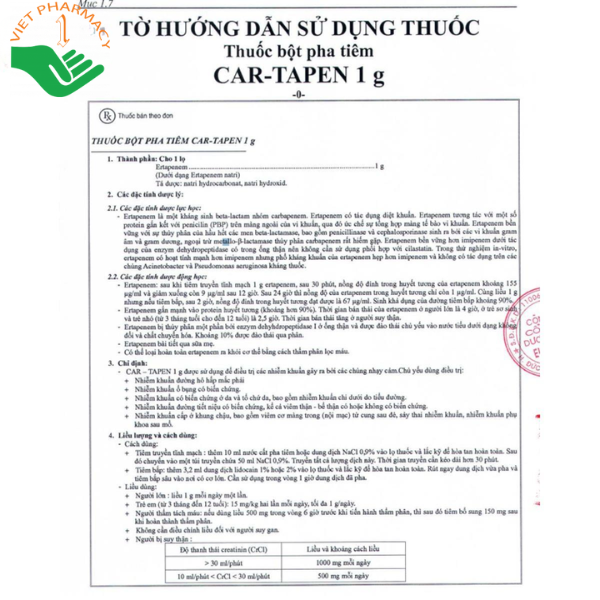 Thuốc Car – Tapen 1g dùng đường tiêm bắp hoặc tiêm tĩnh mạch.