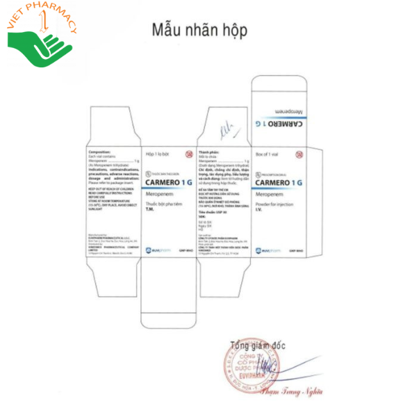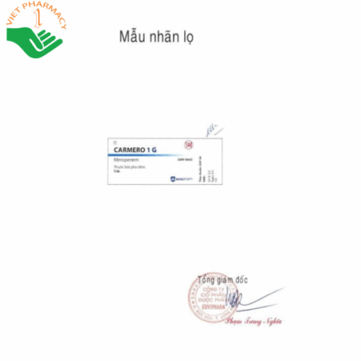 - Liều thường dùng: ½ – 1 lọ Carmero 1g mỗi 8 giờ.