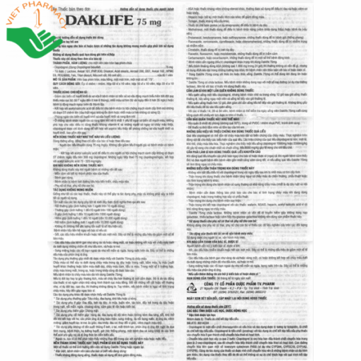 - Daklife 75mg chứa lactose. Những bệnh nhân có vấn đề di truyền hiếm gặp không dung nạp galactose, thiếu lactase hoặc kém hấp thu glucose-galactose không nên dùng sản phẩm thuốc này.