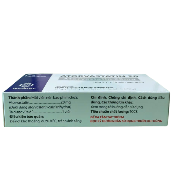 Chỉ định thuốc điều trị tăng lipid huyết, phòng ngừa bệnh tim mạch Medipharco Atorvastatin 20