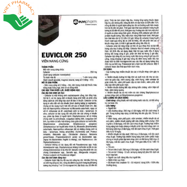 Thành phần: Thành phần của thuốc Euviclor 250 bao gồm: