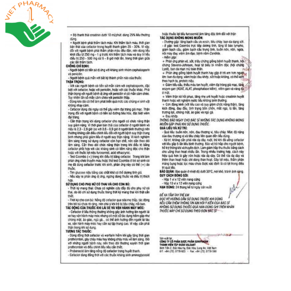 - Chống chỉ định với bệnh nhân có tiền sử đã từng dị ứng hoặc mẫn cảm với kháng sinh penicillin hoặc Cephalosporin.