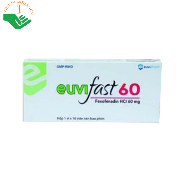 - Hoạt chất chính Fexofenadine HCl đã thể hiện nổi bật tác dụng của thuốc Euvifast 60. Fexofenadine thuộc nhóm thuốc kháng Histamine, được dùng nhiều trong các trường hợp dị ứng như ngứa mũi, sổ mũi, nổi mẫn ngứa, chảy nước mắt, ngứa mắt, chảy nước mũi.
