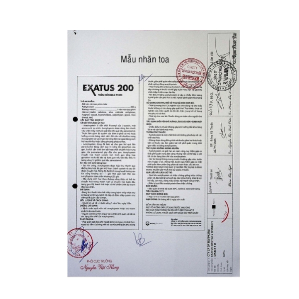 Mỗi viên nén bao phim thuốc Exatus 200mg chứa: