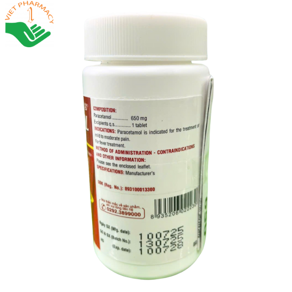 Paracetamol được chỉ định để điều trị các cơn đau nhẹ đến trung bình. Hạ sốt.