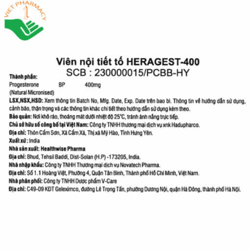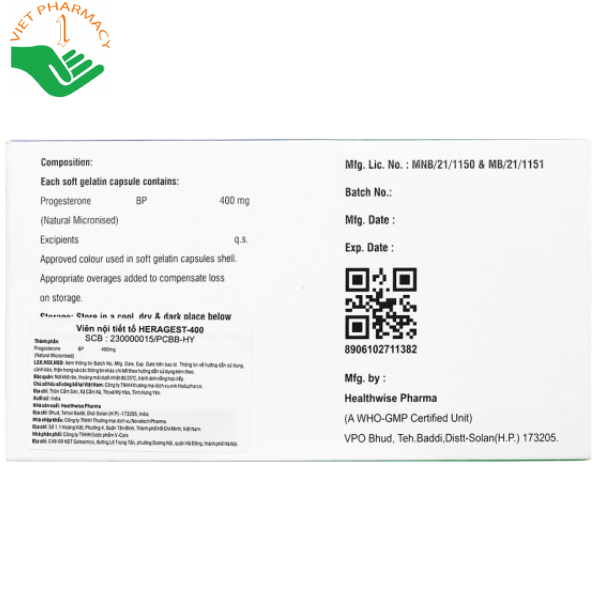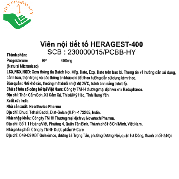 - Heragest-400 chứa progesteron micronised giống với progesteron buồng trứng của con người về mặt hóa học.