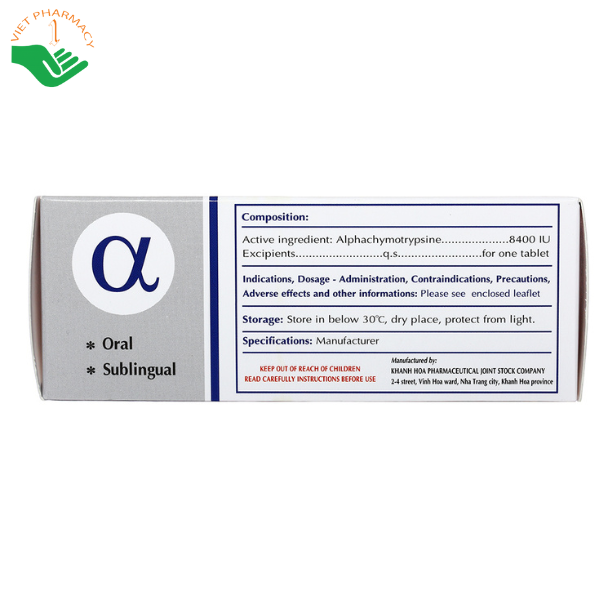 Thành phần dược chất: Alphachymotrypsin 8400 IU.