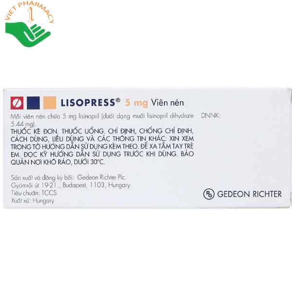- Liều Lisopress: 5 mg uống ngày 1, 5 mg ngày 2, 10 mg ngày 3, sau đó 10 mg/ngày.