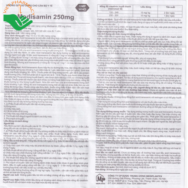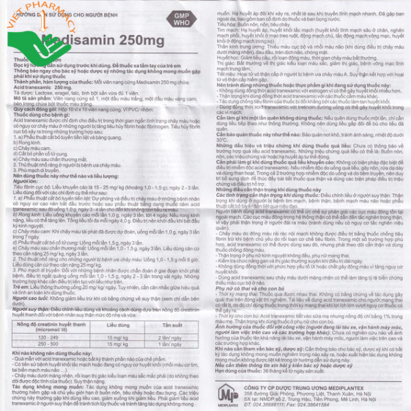 Chỉ định thuốc Medisamin 250mg Mediplantex điều trị tình trạng chảy máu