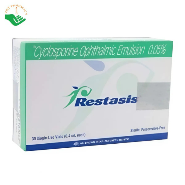 Nồng độ cyclosporine A trong máu được định lượng bằng sắc ký lỏng hiệu năng cao khối phổ đặc hiệu. Nồng độ cyclosporine trong máu, trong tất cả các mẫu thu nhận được, sau khi nhỏ Restasis™ 0,05% 2 lần/ngày ở người trong 12 tháng, đều ở dưới mức giới hạn 0,1 ng/mL. Không phát hiện sự tích lũy thuốc trong máu trong suốt 12 tháng điều trị với Restasis™.