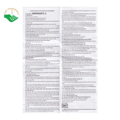 - Hấp thu: Nicorandil hấp thu tốt qua đường tiêu hóa.