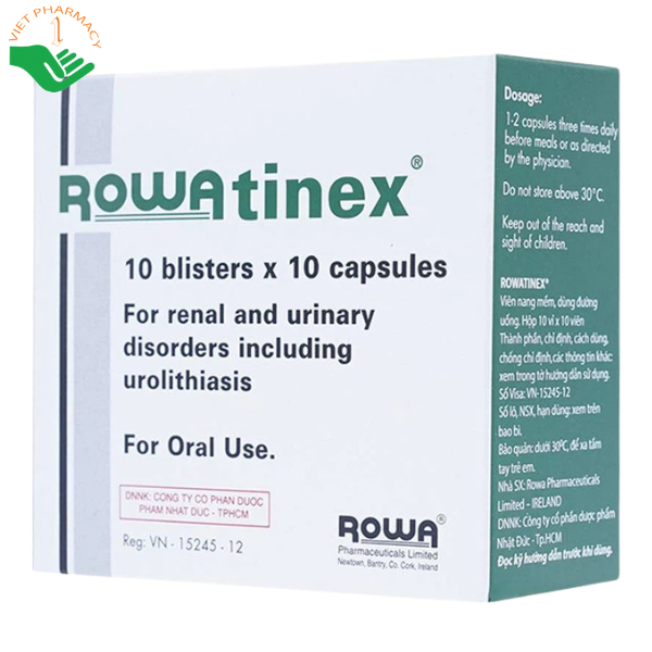 - Thuốc Rowatinex dự phòng và điều trị bệnh sỏi niệu, sỏi thận, cơn đau quặn thận, khó tiểu, ít nước tiểu, nhiễm trùng đường niệu.
