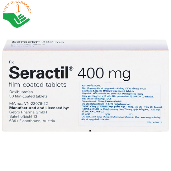 - Đối với trẻ vị thành niên từ 12 – 18 tuổi: 200 mg dexibuprofen, 1 đến 3 lần mỗi ngày (một nửa viên Seractil 400 mg).