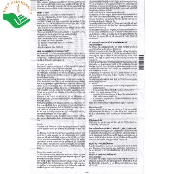 - Trong ba tháng đầu và ba tháng giữa thai kỳ, không được dùng NSAID trừ khi thực sự cần thiết. Nếu sử dụng, chỉ dùng ở liều thấp và thời gian điều trị ngắn nhất có thể.