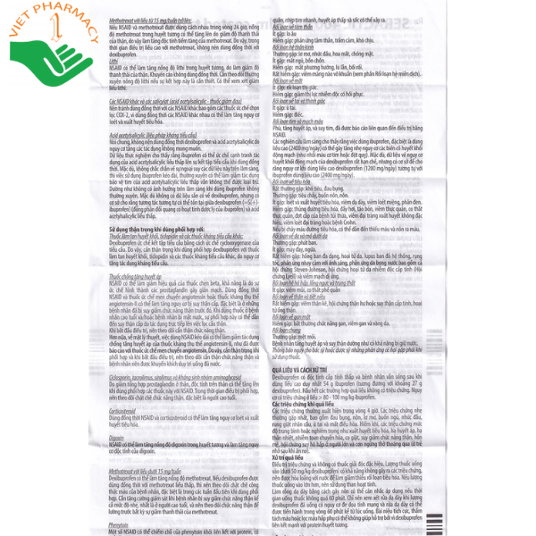 - Liều khuyến cáo là 600 đến 900 mg dexibuprofen mỗi ngày, chia tối đa 3 lần.
