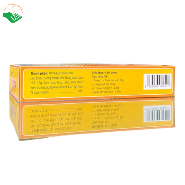 - 4ml dịch chiết tương đương vi men bia đã tiêu chuẩn (Saccharomyces cerevisiae): 10,0g