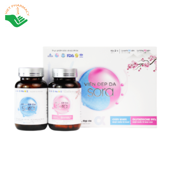 Viên đẹp da Sora với công thức mang tính đột phá giúp hỗ trợ cải thiện tình trạng sạm nám da. Chiết xuất L-Glutathione với độ tinh khiết 99% cùng các dược liệu quý từ thiên nhiên như nhụy hoa nghệ tây, tinh dầu hoa anh thảo, fucoidan… vừa giúp cải thiện làn da vừa giúp tăng cường sức khỏe cho phái đẹp.