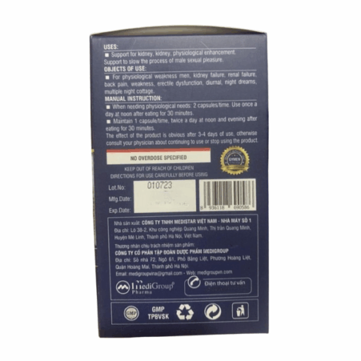 Sản phẩm bổ sung các thành phần dưỡng chất từ bột hàu, kẽm và các chiết xuất thảo mộc khô, giúp hỗ trợ bổ thận, nâng cao sinh lực và cải thiện sức khỏe sinh lý nam giới, đồng thời hỗ trợ làm chậm quá trình mãn dục.