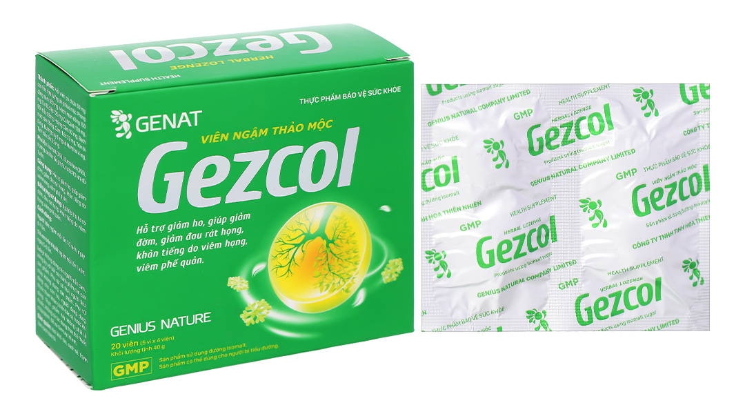 Kẹo ngậm Gezcol hỗ trợ giảm ho, giúp giảm đờm, giảm đau rát họng, khản tiếng do viêm họng, viêm phế quản.