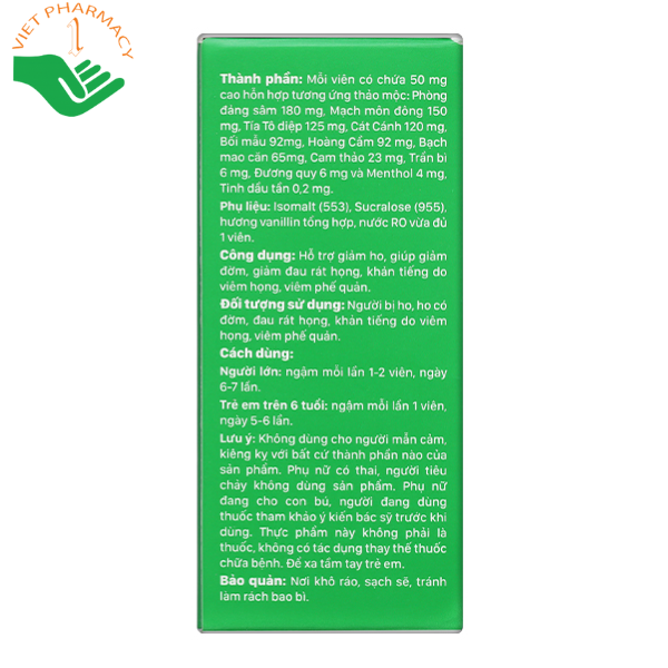 Kẹo ngậm giảm ho, làm dịu cơn ho không phải là thuốc và không có tác dụng thay thế thuốc chữa bệnh.