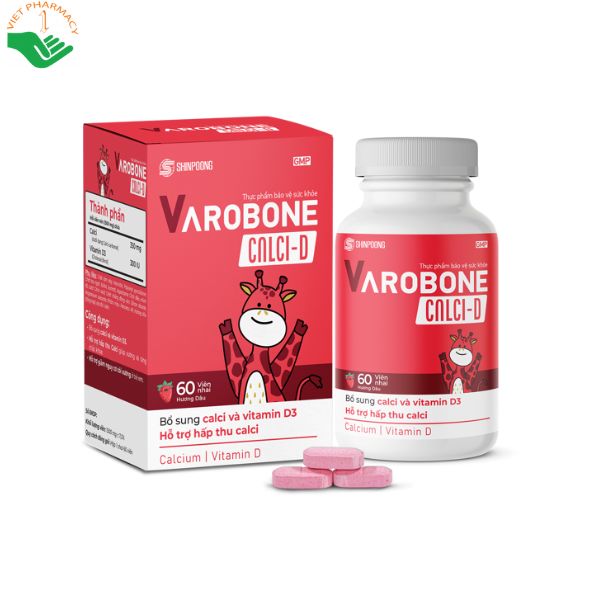 Hiểu được nỗi lòng của các bậc phụ huynh, Viên nhai Varobone Calci D hương dâu bổ sung Calci và vitamin D3 ra đời, đây là thực phẩm bảo vệ sức khỏe, được sản xuất tại Công ty TNHH Dược phẩm Shinpoong Daewoo, Việt Nam. Sản phẩm được bào chế dạng viên nén, có thể nhai với mùi vị hương dâu, thích hợp sử dụng cho trẻ em.