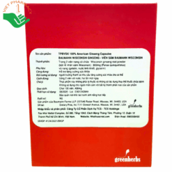 - Wisconsin ginseng root powder (Bột rễ nhân sâm Wisconsin): 800mg