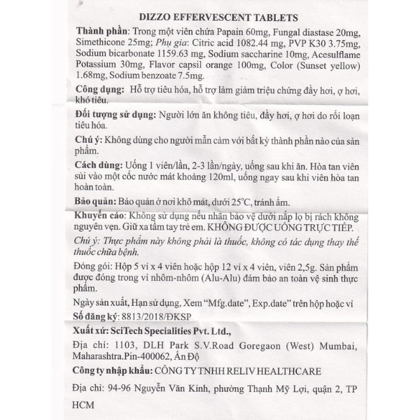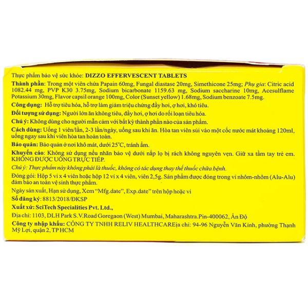 Mô tả sản phẩm về Viên sủi Dizzo Reliv hỗ trợ tiêu hóa