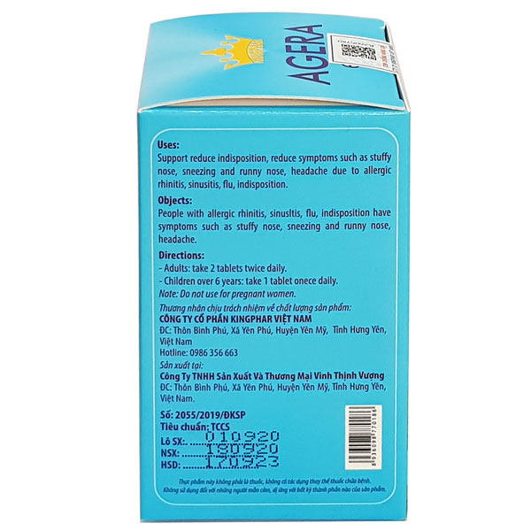Mô tả viên uống Agera Extra Kingphar, hỗ trợ tán phong hàn, giảm ngạt mũi, hắt hơi và sổ mũi