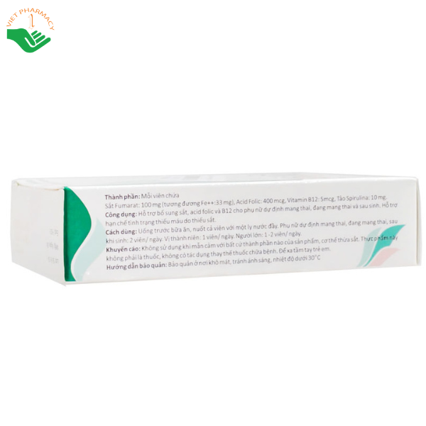 - Sắt fumarat: 100mg (tương đương Fe²⁺ 33mg)