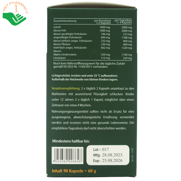 – Dầu hạt lanh………………………………………500mg