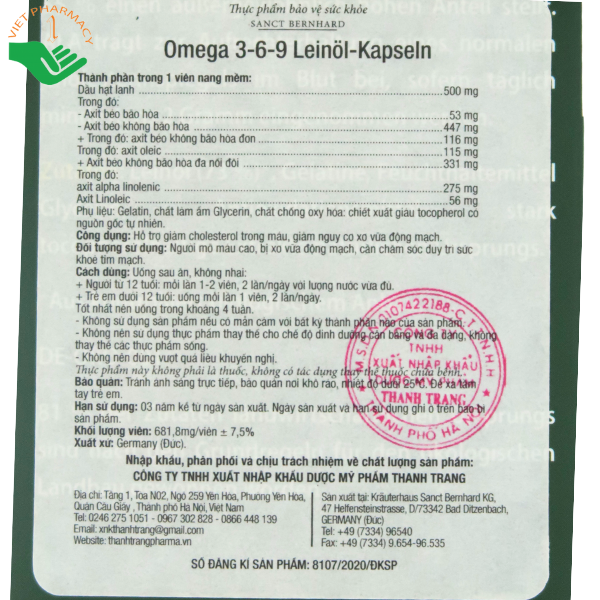 Mô tả sản phẩm viên uống Omega 3 6 9 Sanct Bernhard